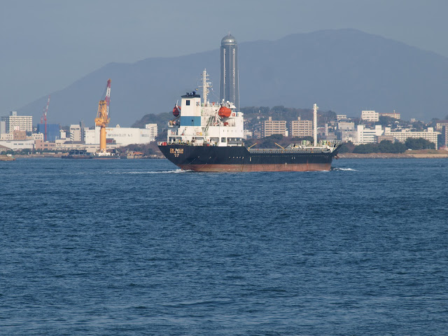 On January 9th 2024 AD the Korean general cargo DK IMAN (not DKNY!!!) passed thru the Kanmon Strait between Shimonoseki and Moji Kitakyushu on its way to Fukuyama Japan from Pyeongtaek Korea. The Jeju based DK IMAN (109 m) looks tiny next to CMA CGM CHOPIN (277 m). Ship Freakazoid used an Olympus E520 DSLR with Zuiko 40-150mm lens to capture this vessel on digital "film" for fellow ship freaks to enjoy. DK IMAN's home port is apparently Jeju Korea. Never been, but would love to visit as it is supposed to be lovely.